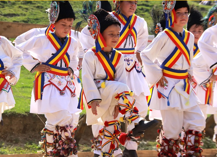 The young boys who will become căluşari "are chosen" long time ago, and they will choose a leader (the mute), they take an oath of allegiance and from that moment they will not tell anything of what is happening within their group. The day of Pentecost, the căluşari dance first in the churchyard and then will go around the village, dancing in all the houses where they are received, as in the caroling tradition for Christmas. The young men are dressed in special traditional costumes used for holidays, wearing bells at their foots, carrying an average height and thickness sticks, with which they beat the earth, raise them toward the sun, they jump, etc., saying words without any special meaning, being considered by linguists as esoteric ritual texts.