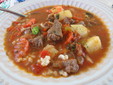 It is a thick soup made with beef, onions, peppers, paprika, bay leaves, white wine, and vinegar that acquires a delicious taste if cooked in a cauldron over a big fire.
