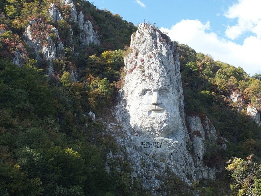 Below the head of the statue, there is an inscription dedicated to the one who initiated and financed the work, Iosif Constantin Drăgan, a businessman and admirer of Romanian history and origins: “DECEBAL REX – DRAGAN FECIT” (King Decebal – made by Drăgan).