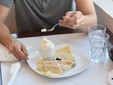 Puneți puțin ulei într-o tigaie rotundă (doar câteva picături) și, cu ajutorul unui polonic, turnați puțin aluat în tigaie. Când clătita începe să se desprindă de tigaie, o puteți întoarce. Procedați la fel cu restul aluatului, iar când clătitele sunt gata, umpleți-le cu piure de castane.